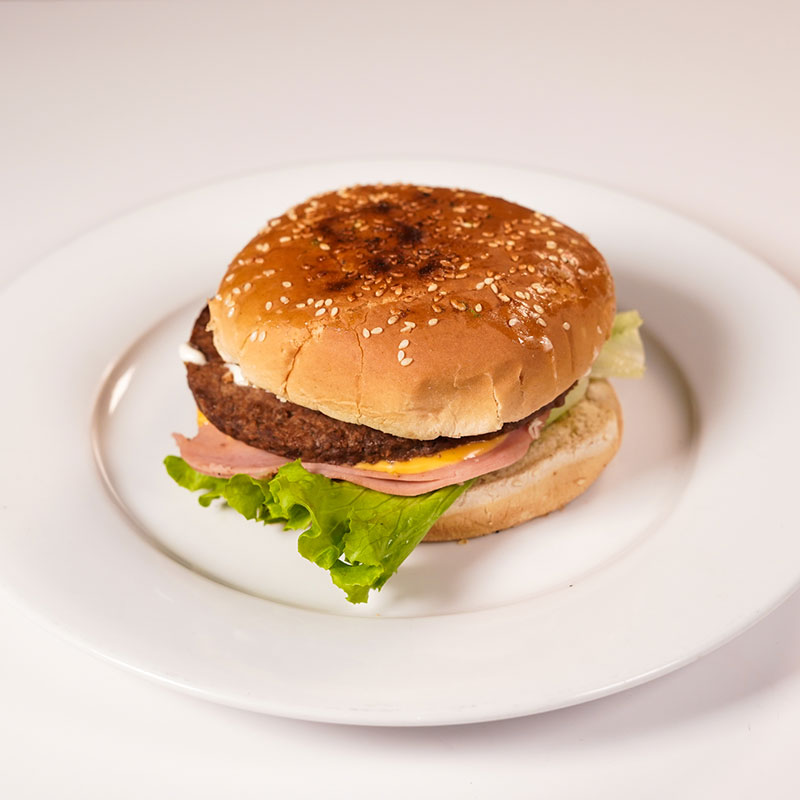 Servida en un tierno pan de ajonjolí, cuarto de libra de carne a la plancha, complementada con el suave sabor del queso Kraft, jamón y los vegetales más frescos de la temporada. Bañada en nuestro inigualable aderezo de la casa.