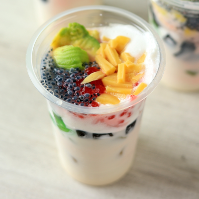 Una mezcla cremosa y vibrante de frutas frescas de temporada....