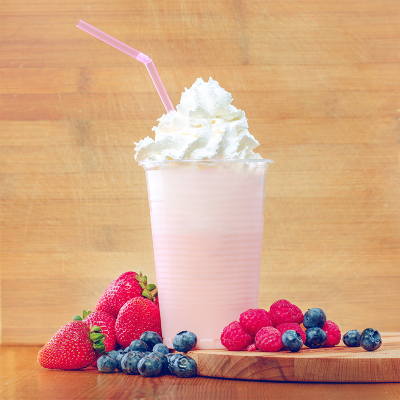 Cremoso, dulce y encantador. Nuestro milkshake de fresa mezcla helado...