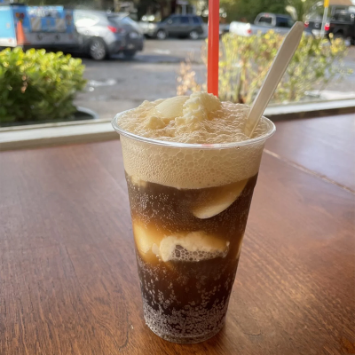 Refrescante y cremosa, nuestra vaca negra combina helado de vainilla...